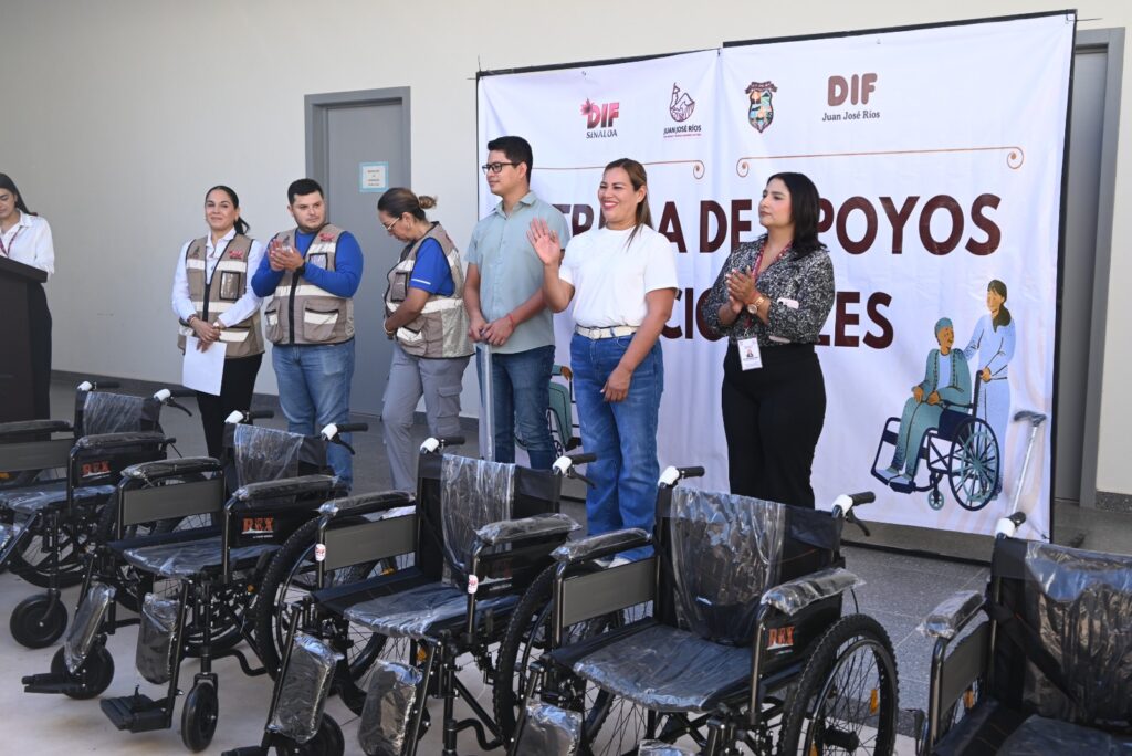 Juan José Ríos a 11 de noviembre de 2025 – Gracias al apoyo del gobernador Rubén Rocha Moya y de la presidenta de DIF Sinaloa, Dra. Eneyda Rocha Ruiz, la alcaldesa Evangelina Llanes Carreón, en coordinación con el Sistema DIF Municipal, encabezó la entrega de 11 sillas de ruedas, 2 bastones y 7 credenciales nacionales para personas con discapacidad a beneficiarios y adultos mayores en situación vulnerable.