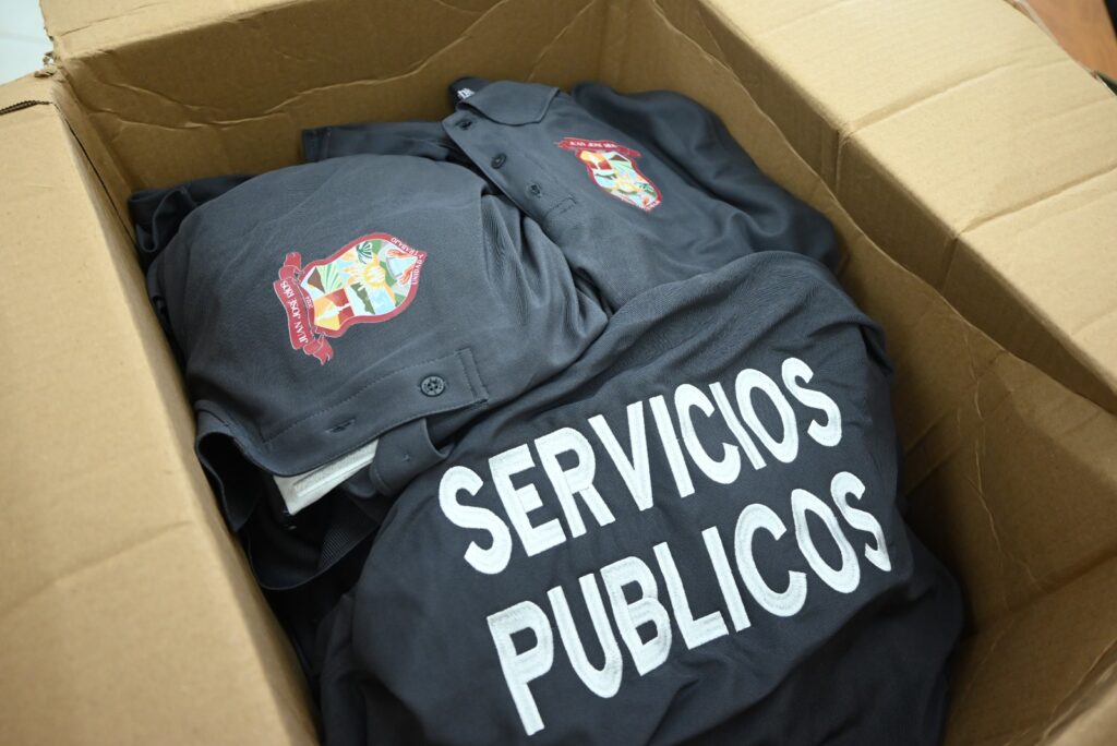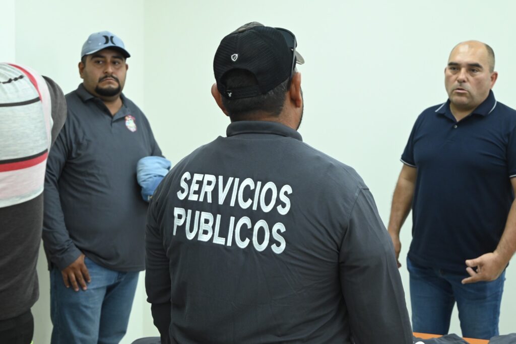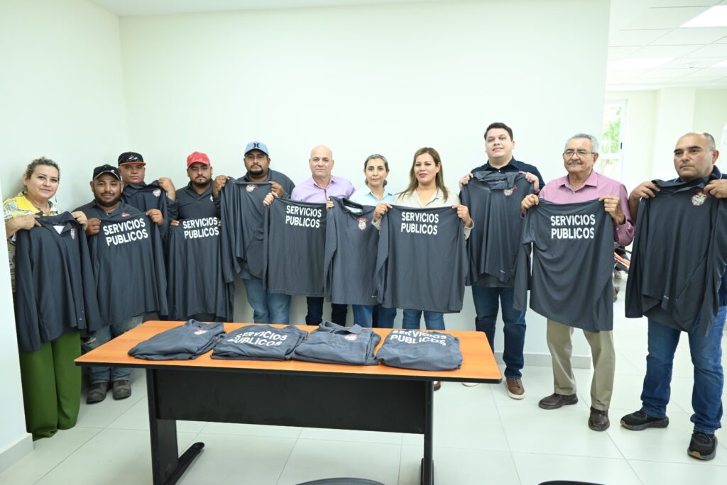 Alcaldesa Evangelina Llanes Carreón entrega uniformes a personal de la Dirección de Servicios Públicos.