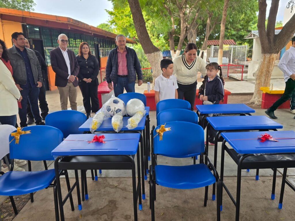 Juan José Rios, Sinaloa a 29 de enero de 2026.- Esta mañana, la Escuela Primaria Amado García García de la cabecera municipal se vio beneficiada ante el cumplimiento de la entrega de 370 mesas y 370 sillas para todo el plantel educativo, siendo una promesa cumplida realizada por el Gobernador Dr. Rubén Rocha Moya en su pasada visita al municipio.