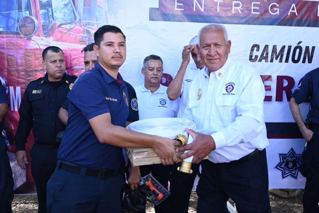 Durante el evento, comandantes de bomberos de los municipios de Guasave, Angostura, Salvador Alvarado, Ahome, Sinaloa de Leyva, El Fuerte y Mocorito realizaron la donación de equipo especializado para el cuerpo de bomberos, sumando herramientas clave para reforzar su labor. Enseguida, se efectuó el corte de listón para la entrega oficial del camión de bomberos el cual viene a reforzar el compromiso de la administración municipal con la seguridad y el bienestar de las y los habitantes.