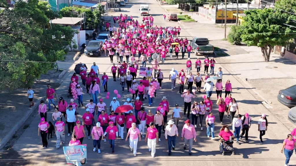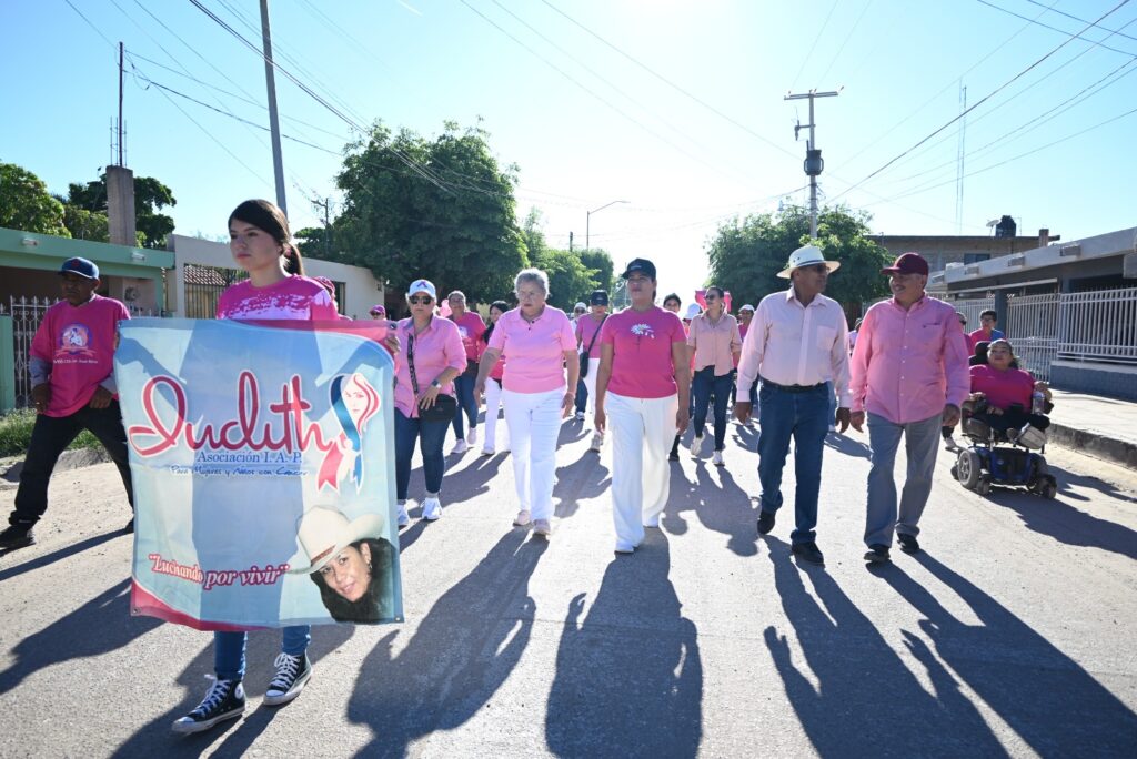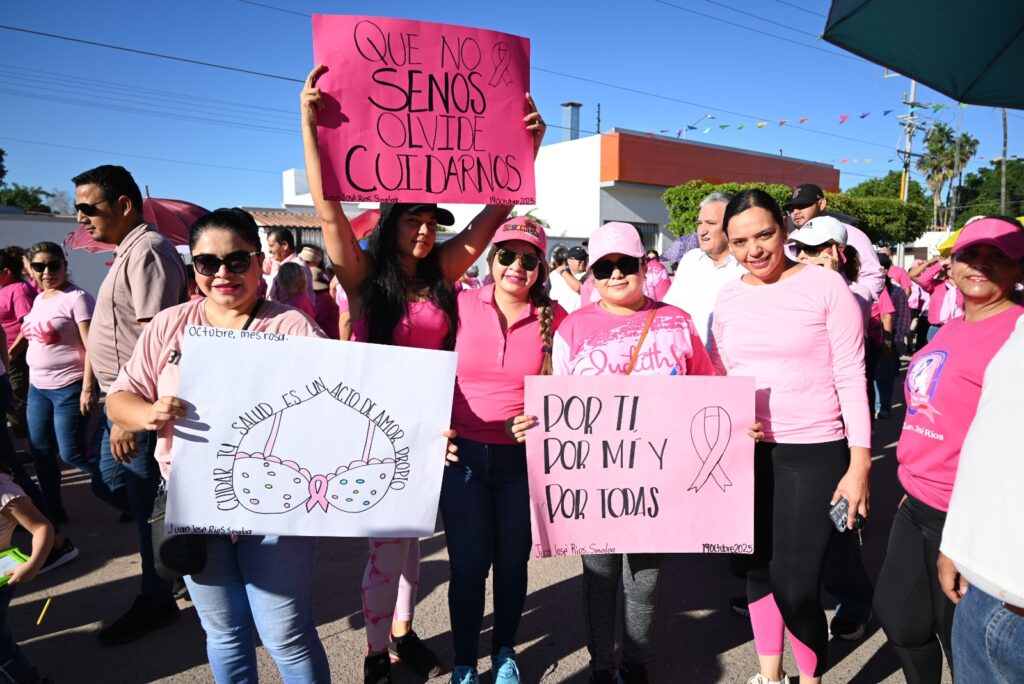 Juan José Ríos, Sinaloa a 19 de octubre del 2025.- Por motivo al Día Mundial contra el Cáncer de mama, el Gobierno Municipal participó en la caminata pacífica organizada por la Asociación Judith, donde la alcaldesa Evangelina Llanes Carreón marchó por la lucha de esta batalla, realzando su compromiso con la visibilización y sensibilidad ante este día conmemorativo. 🩷