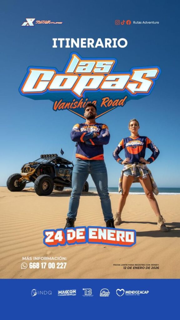 Los Mochis, Ahome a 15 de enero de 2026.- Se llevó a cabo una rueda de prensa para presentar Las Copas “Vanishing Road”, que tendrá inicio en el municipio de Juan José Ríos. Esta emocionante ruta off-road garantiza una experiencia única a los amantes de las rutas todoterreno, con terrenos y paisajes impresionantes.